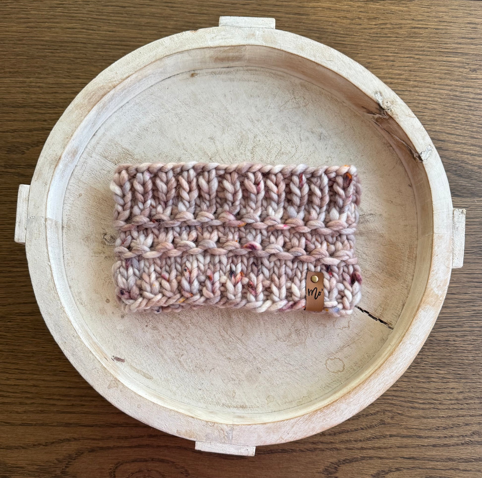 This knit headband is made of superwash merino wool.